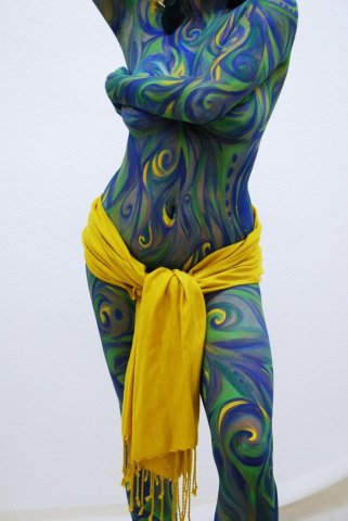 Es ist mir ein Anliegen, dass Du Dich in deiner Haut wohlfühlst, während und nach der Bemalung. Du kannst entscheiden, ob Du nackt, mit Höschen oder im Bikini bemalt werden willst. Mit der Technik- und Farbwahl gehe ich selbstverständlich auf Deine persönlichen Vorlieben ein, wähle Farben, die Deine Persönlichkeit unterstützen. Die Farbwahl ergibt sich in der Annäherung an Dich als lebendige Leinwand. Hast Du spezielle Motivideen oder Wünsche? Falls nicht, lasse ich mich einfach von Deinen individuellen, ganz eigenen Körperformen anregen und inspirieren, wenn ich mit meinem Pinsel auf der Körperlandschaft entlangwandere. Wenn Du möchtest, darfst Du auch selbst mit malen.