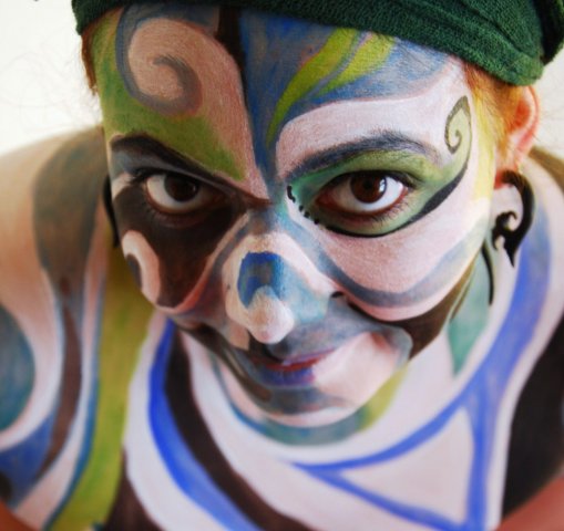 Gesicht, Oberkörper, oder nur Teile des Körpers werden mit Pinsel und Farbe bemalt und verziert.